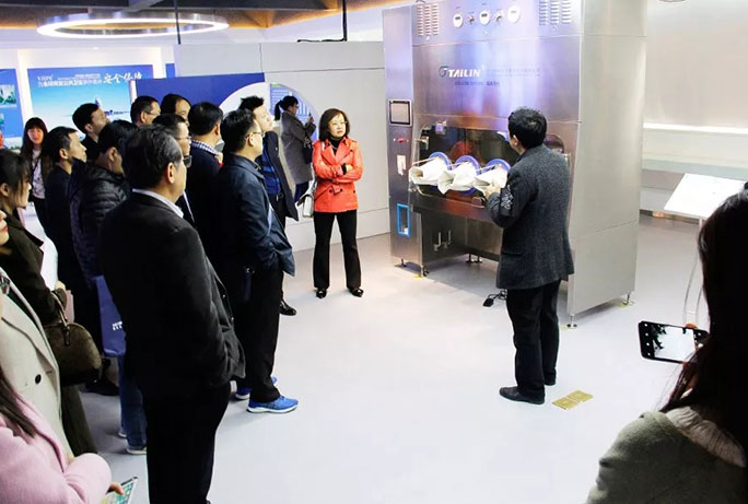 ?? 11月22日下午,濟南市生物醫藥行業領導、企業家考察團,在濟南市食藥監局領導的帶領下蒞臨泰林生物調研指導,泰林生物副總經理夏信群、生物技術銷售…
