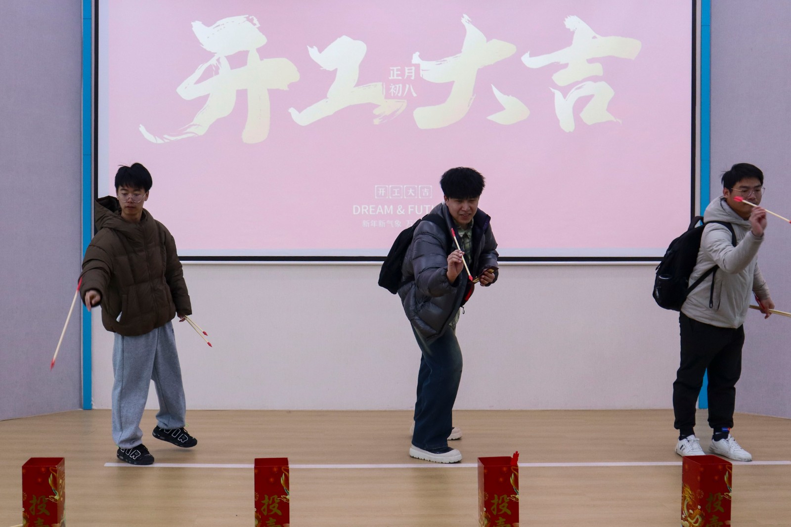 此外,各個園區還舉辦了趣味活動,幸運紅包墻、好運乒乓、猜字謎、投壺、朋友圈集贊,內容豐富,獎品多樣。在緊張刺激的游戲環節,歡呼聲此起彼伏,現場氣氛熱烈非凡,大家通過努力獲得了心儀的獎品,為新的一年增添了一份好運和喜悅。